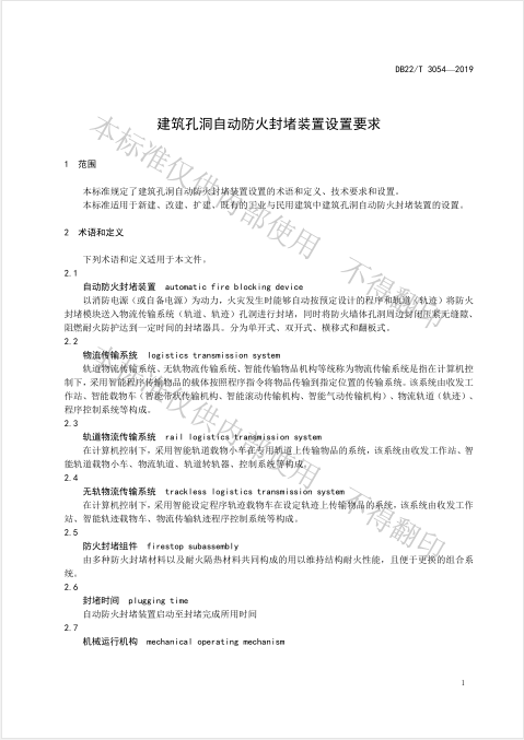 《建筑孔洞自動(dòng)防火封堵裝置設(shè)置要求》地方標(biāo)準(zhǔn)已于2019.8.15頒布實(shí)施