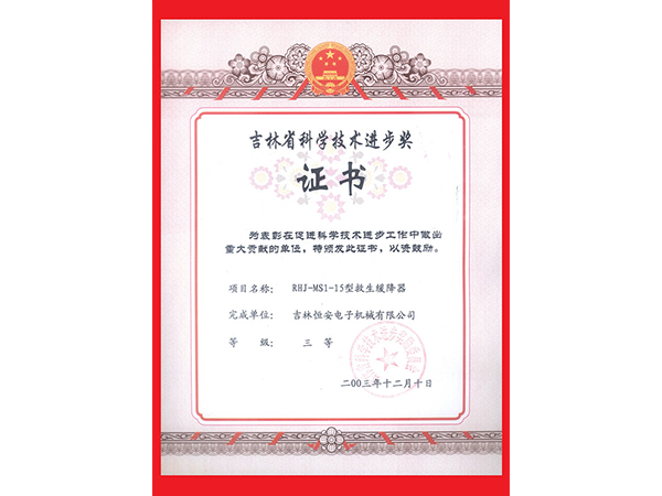吉林省科學技術進步獎證書