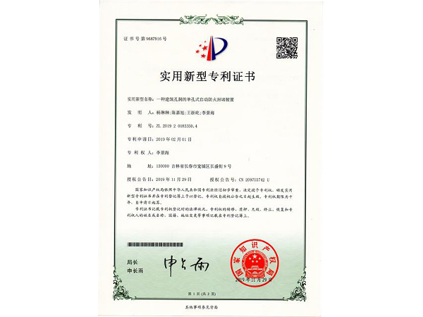 下一篇:實(shí)用專利證書